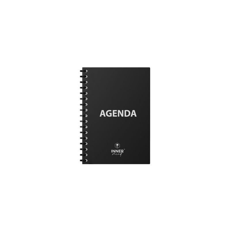 Agenda journalier format A5 avec couverture en cuir synthétique, offrant une page par jour pour une organisation optimale. Inclut une fermeture élastique et un porte-stylo.